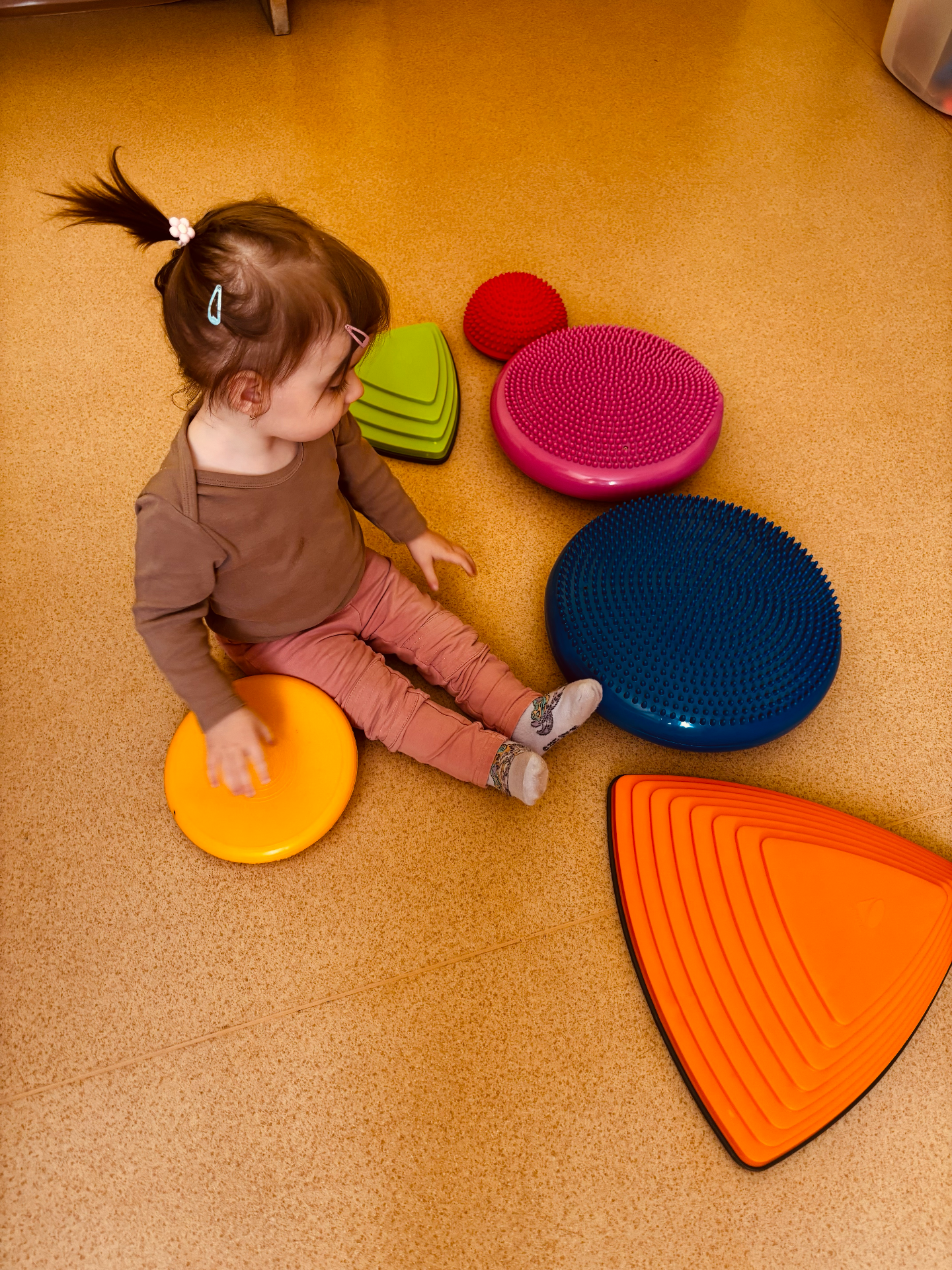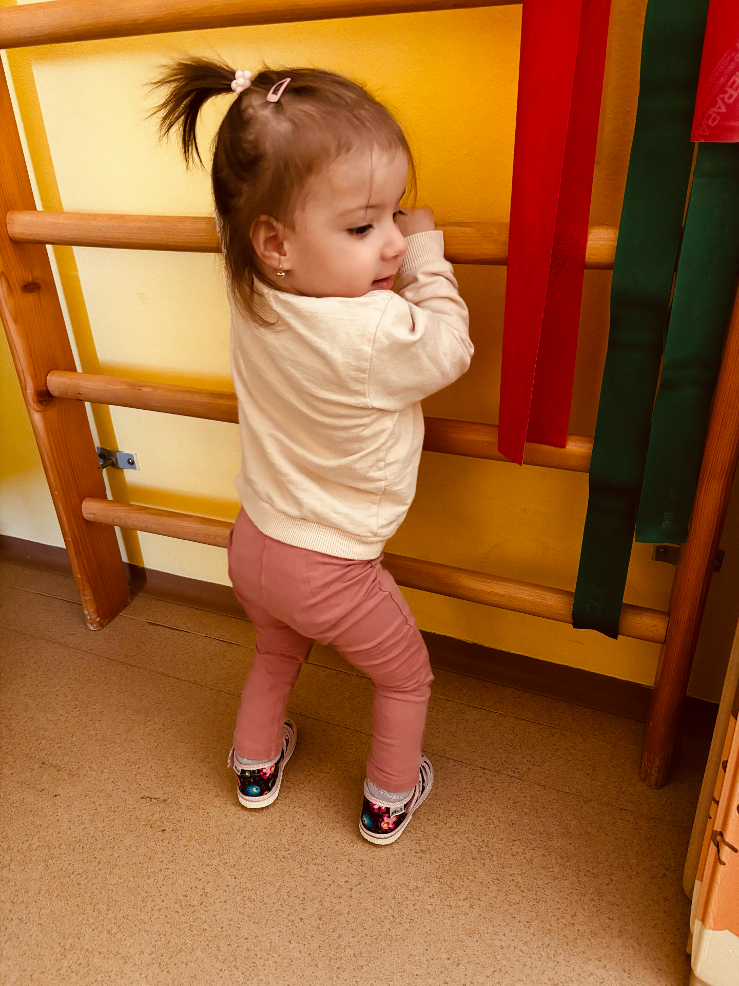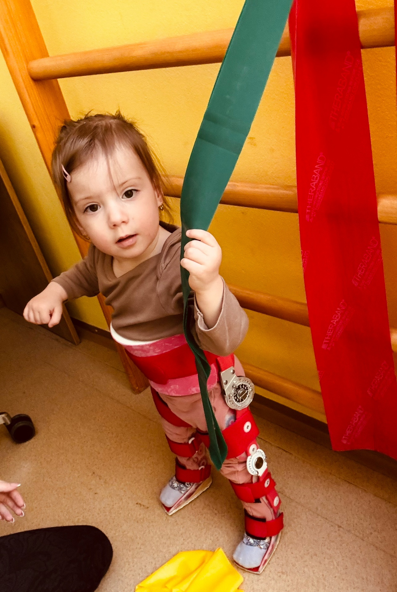 Na jesennom pobyte sme sa zamerali na stavanie a státie. S pomocou nových ortéz dokáže stáť pri nábytku a trénovať udržiavanie rovnováhy. Aj napriek chýbajúcej citlivosti a obmedzenej hybnosti sa Leika veľmi snaží postaviť a zapájať nožičky, čo je pre nás obrovskou motiváciou a radosťou.